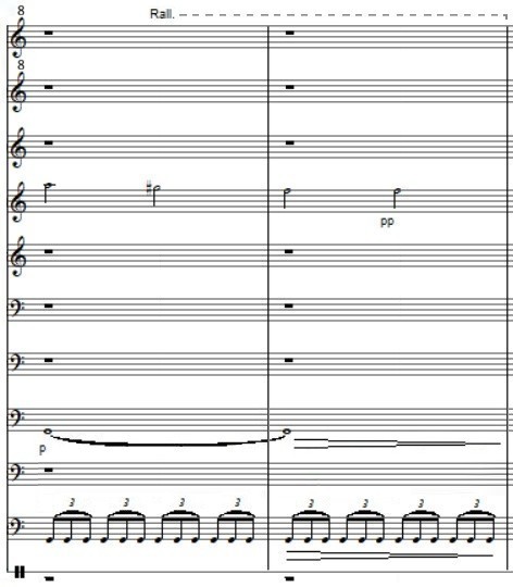 is played thus lightly, that it's very hard to distinguish the individual notes. There may be more notes to it, and some might be off. All is notated as it sounds.